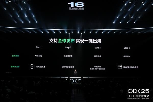 同时,OPPO 应用生态全新的“一键出海”功能,为全球开发者提供更方便的海外增长通道。在OPPO应用服务所覆盖的108个国家或地区范围内,开发者均可实现APP的快速分发,无需重复打包或多次上传,真正实现"开发一次,全球发布"。