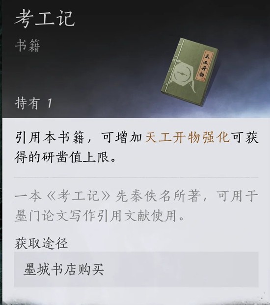 考工记(这个简单,做天工开物,有精力的就去打猴子,我上一篇分享了地点,没精力的直接让别人敲你就好啦)我的上限1000分直接做了五个天工开物强化组件,毕竟那么多人找我要,而我又这么好对吧