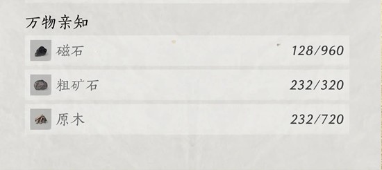 至于磁石、原木、粗矿石,每周墨山道会发一个补贴箱,打开就有80分的原木和80粗矿石,把门派的低价石头木头以及所有磁石买完你就能得到的数据