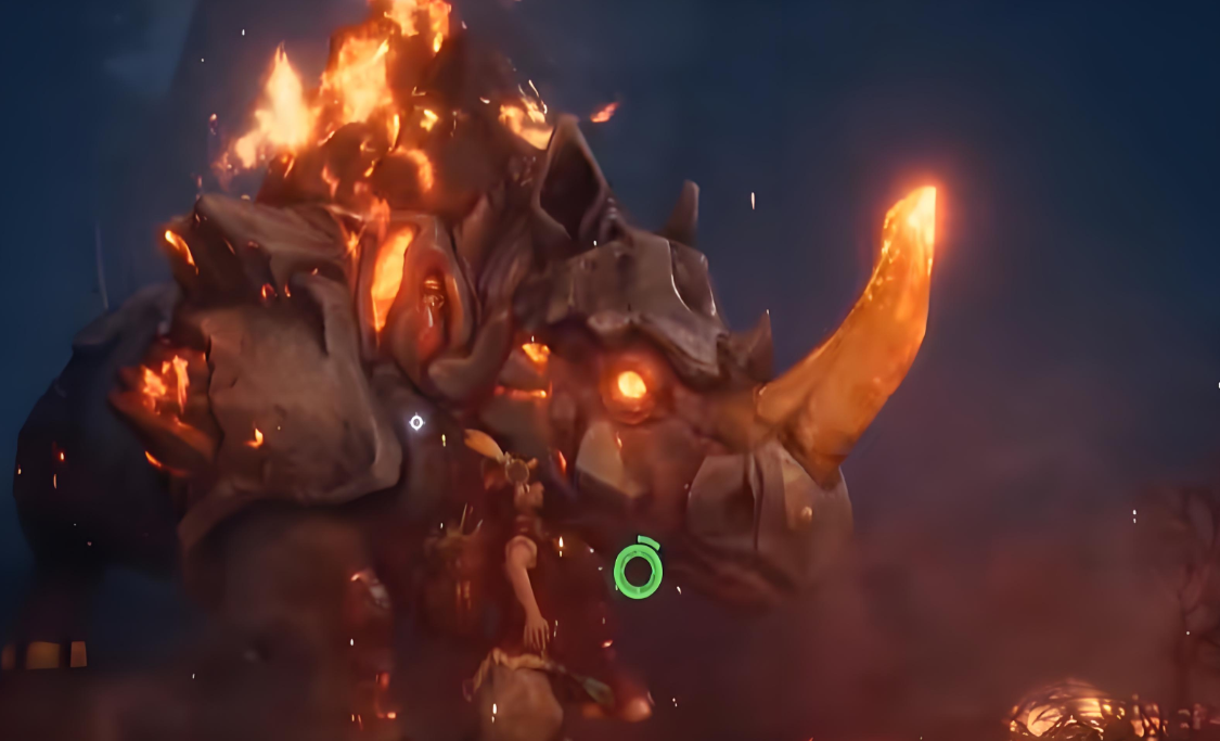 冲撞是库亚塔的基础攻击招式,若是玩家正好直面库亚塔的话,那它就会直接向着玩家所在方向发起猛烈的冲击,在停止冲击的时,还会用自身的火焰对玩家进行火属性的攻击,应对冲撞技能最好的方法就是不要和它正面对抗,而是绕到它的身后去攻击。