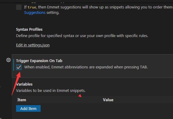 4、然后找到右侧中的"trigger expansion on tab",将其小方框勾选上即可。