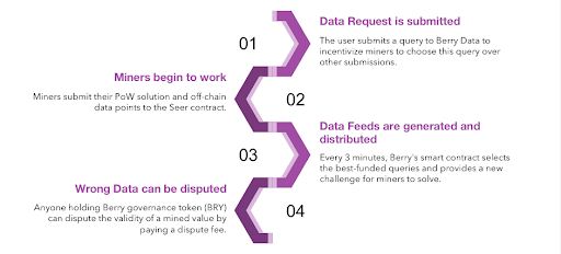 Berry Data 是一个预言机系统,各方可以请求链下数据点的值,矿工竞争将该值添加到链上数据库中,币安智能链上的所有 DApp 都可以访问该数据。