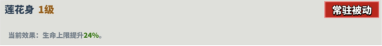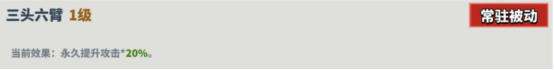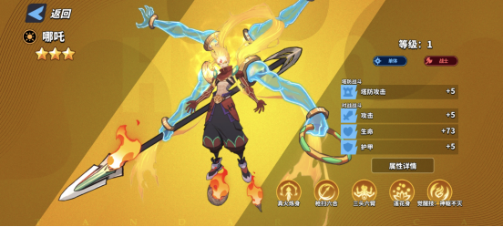 描述:哪吒对金刚不坏之躯的力量发挥到了极致!自身全部属性获得大幅度增强,进入战斗后生命、攻击、暴击各增加30%。