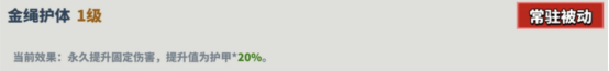 描述:永久提升固定伤害,提升值为护甲*20%。