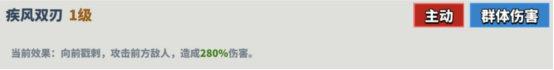 描述:向前戳刺,攻击前方敌人,造成280%伤害。