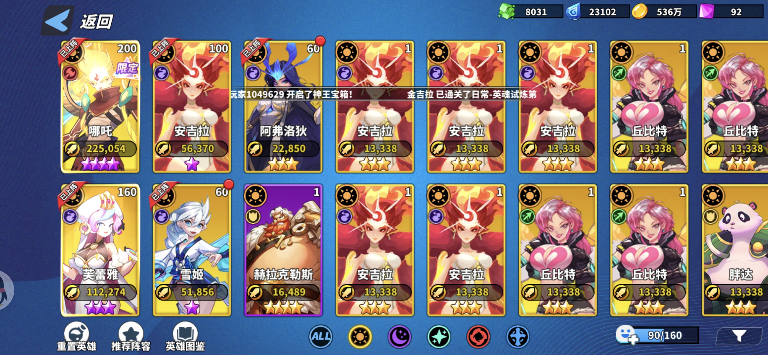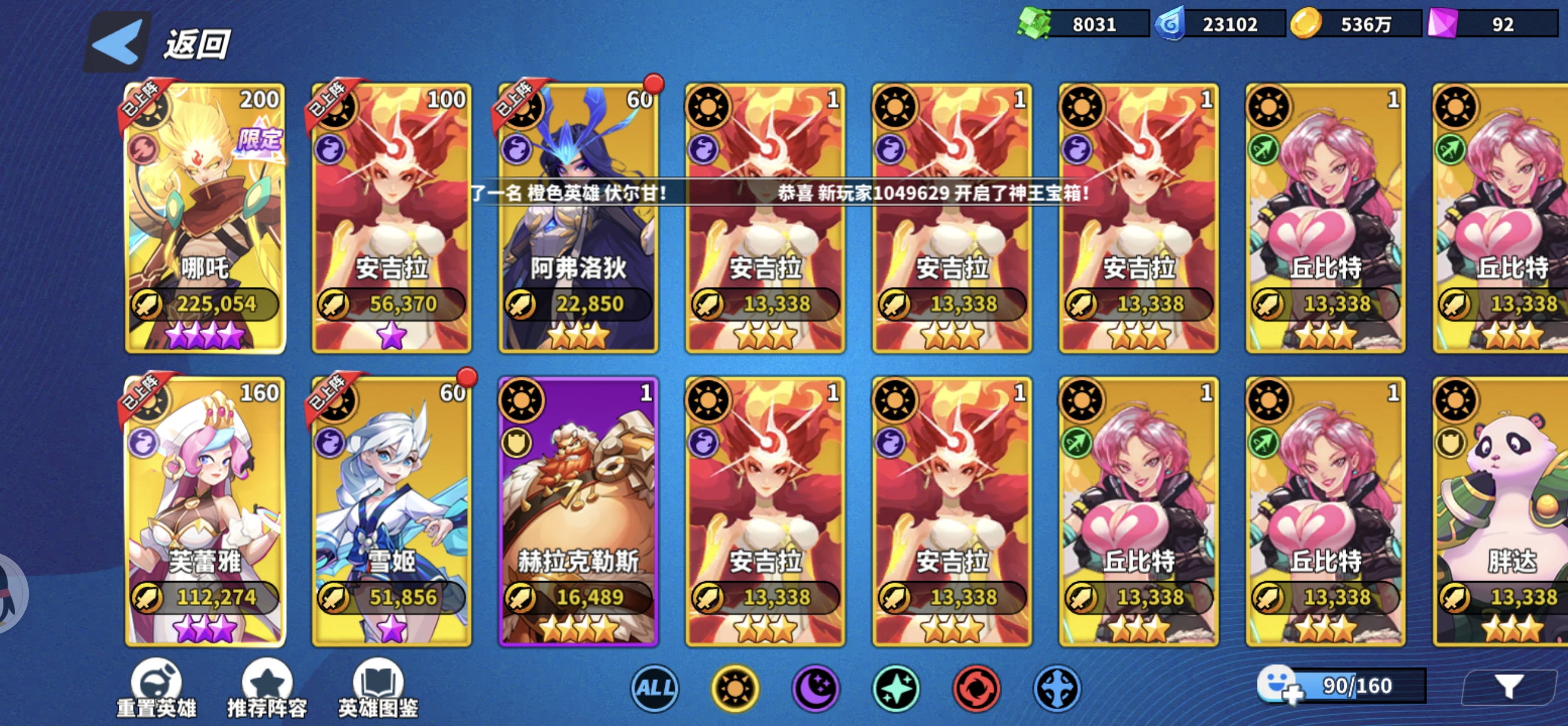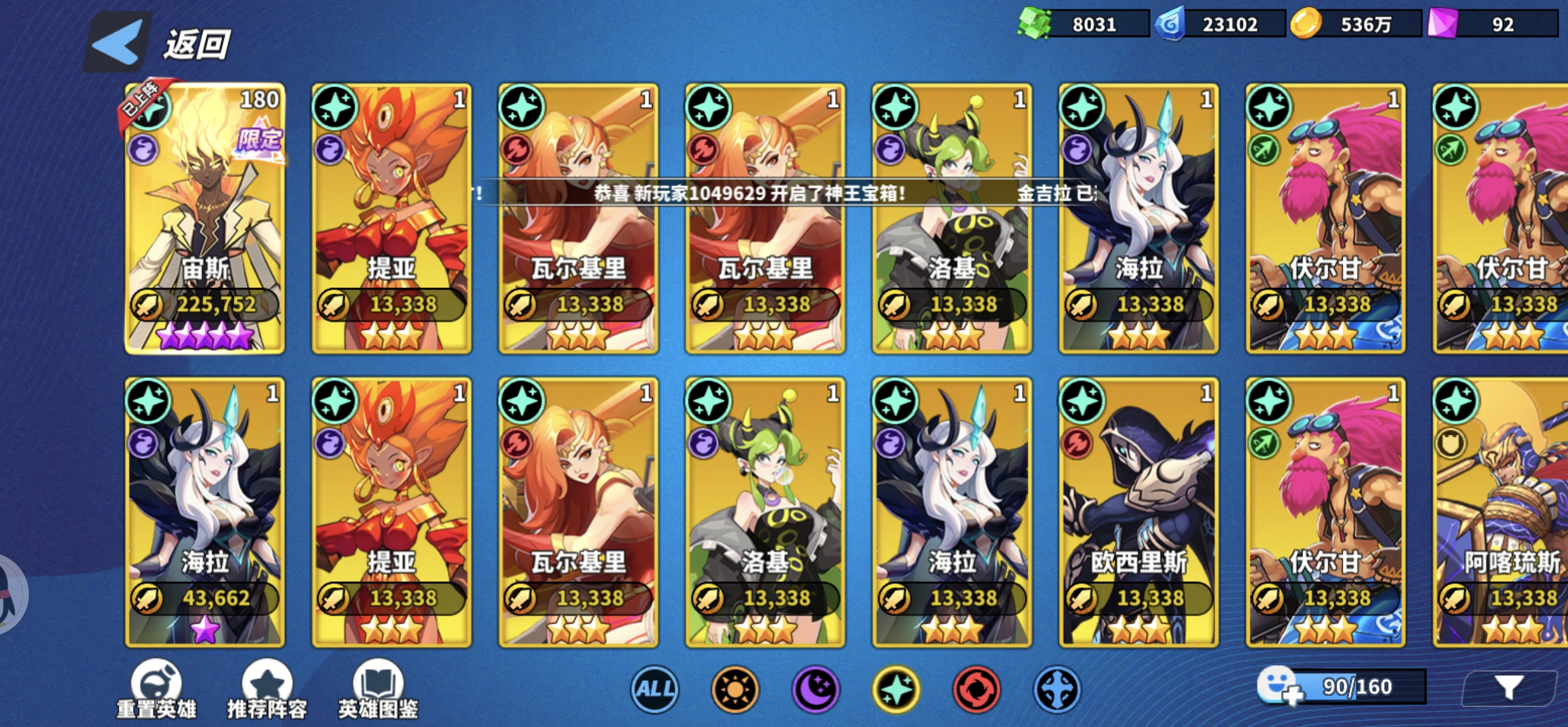 游戏最多可以上阵8个英雄,然后因为同阵营上阵6个有最大的加成40%攻击血量,所以我们就要围绕这个来搭配,