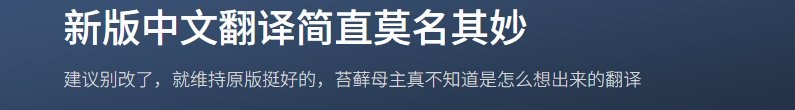 不过,值得庆幸的是,樱桃组在更新公告中表示该翻译仅为初版翻译,如果有任何意见与不满可在下列表格中进行反馈。希望在4号补丁发布时能看到更加合适的简体中文翻译。