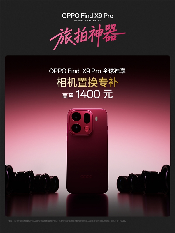 10月16日消息,据OPPO官方消息,OPPO首次为Find X9 Pro推出全球独享的相机置换专项补贴。