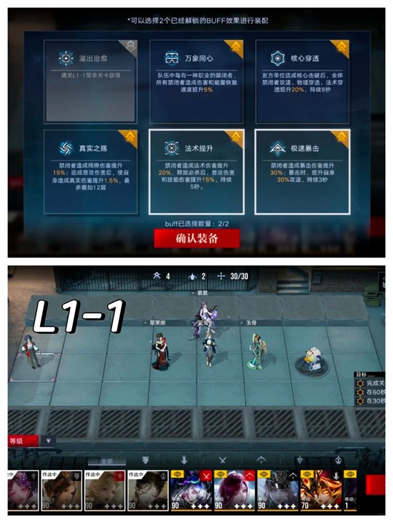 1-1一开始没打过,先把23456按顺序打完,上了个buff就行了。法爆,yy让蓝鹫技伤暴击,等能量集满,耶莱娜、玉骨大招开,蓝鹫输出就行。