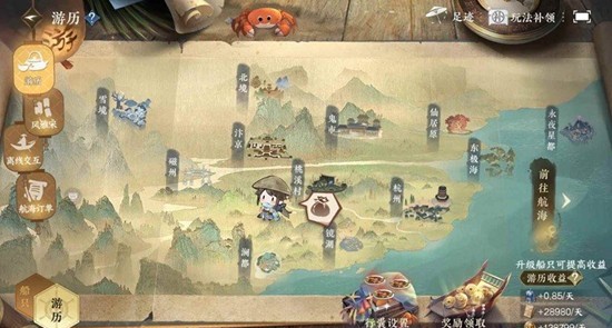 1:游历(有的游历时间比较长,但是金色的游历有好感度礼物,所以按需要去做。)