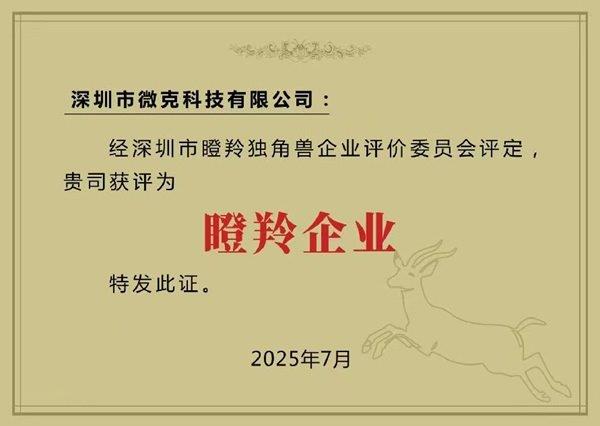 “瞪羚企业”是指已经跨越创业期,以新技术、新产业、新业态、新模式为支撑稳步进入高成长期,综合效益突出、行业影响力大、社会诚信度高、示范带动性强,在引领中小企业转型升级和促进民营经济发展中作用明显、成效显著的优秀标杆企业。微克科技凭借“技术驱动增长”的核心战略,完美契合瞪羚企业的评选标准。