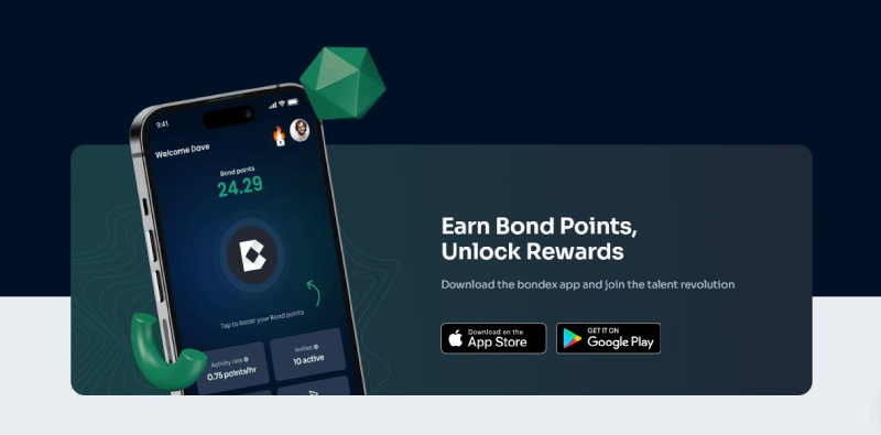 从Google Play或Apple App Store下载Bondex Origin应用。注册并创建你的职业档案。上传你的简历。每24小时登录一次,才能获得BNDX代币奖励。邀请更多用户加入,提升你的收益率。每天重复步骤4。Bondex网络是Bondex Web3人才生态系统的核心,旨在将人才与去中心化世界中的机会连接起来。它为专业人士提供一个平台,可以找到工作机会、展示技能,并参与Web3项目,同时利用区块链技术确保透明度和信任。这个平台让用户可以建立个人档案,并与其他利益相关者互动,还包括内置的消息功能,方便用户直接沟通。