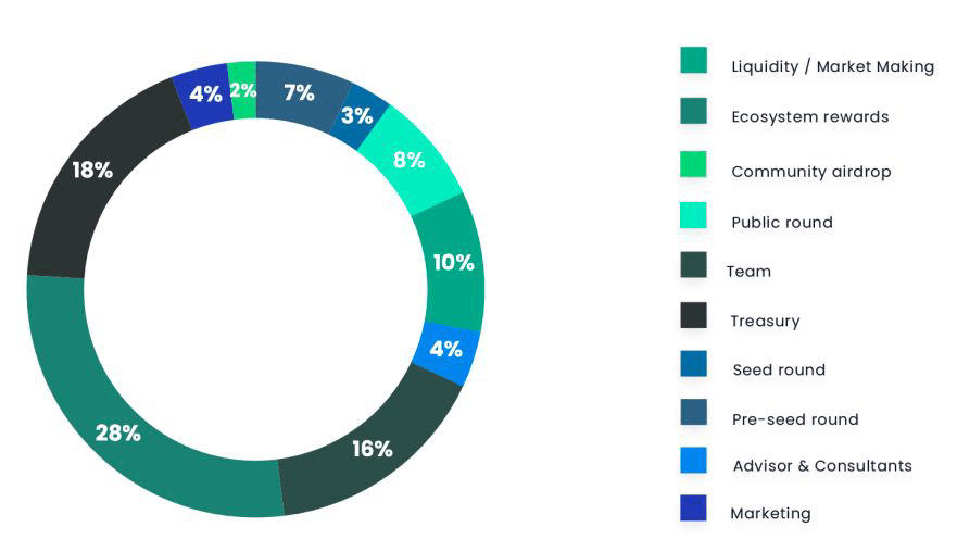 为了奖励Bondex社区建设者和早期用户,Bondex将在代币生成事件(TGE)时进行首次社区空投,占总供应量的2%。之后的空投将来自生态系统奖励池,占供应量的28%,该池会定期通过生态系统收入进行补充。通过定期空投分发的代币将自动被锁定,并且这些锁定的代币不可流通。如果用户想要出售这些代币并获利,他们需要经过一个12周的“解锁期”,这个解锁期从解锁过程开始时启动。