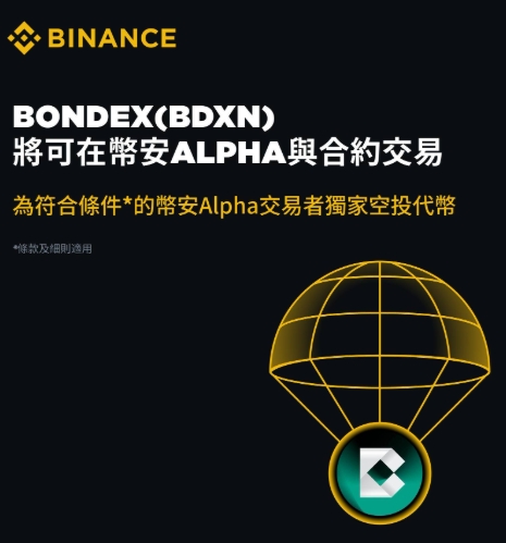 币安是首个公告开放Bondex (BDXN) 合约交易以及在币安Alpha展示BDXN代币的平台。