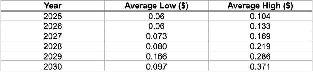 Huma Finance在2029年和2030年的成功取决于成为PayFi领域的权威并适应不断变化的行业趋势。由于其持续增长的人气,专家预测,八年后,HUMA的价值可能在0.20美元至0.25美元之间。如果HUMA被广泛使用且市场保持支持,到2030年,随着它在不断扩大的DeFi领域获得更多立足点,其价值可能达到0.25美元至0.30美元。