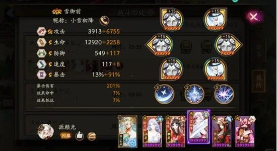 清姬雪幽魂,速度大于190,命中越高越好(命中不够可能要重开)