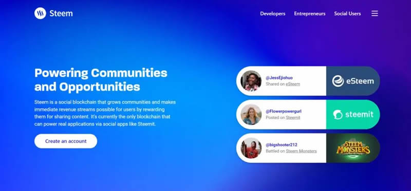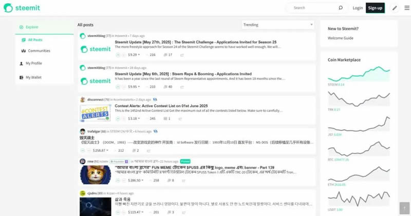 发布文章、分享内容、发表评论和互动。根据社区中的赞成票和影响力,获得 STEEM 代币、Steem Power (SP) 和 Steem Dollars (SBD) 奖励。参与策展系统,即“内容管理”,发现并投票选出优质内容的人也会获得奖励。亮点: