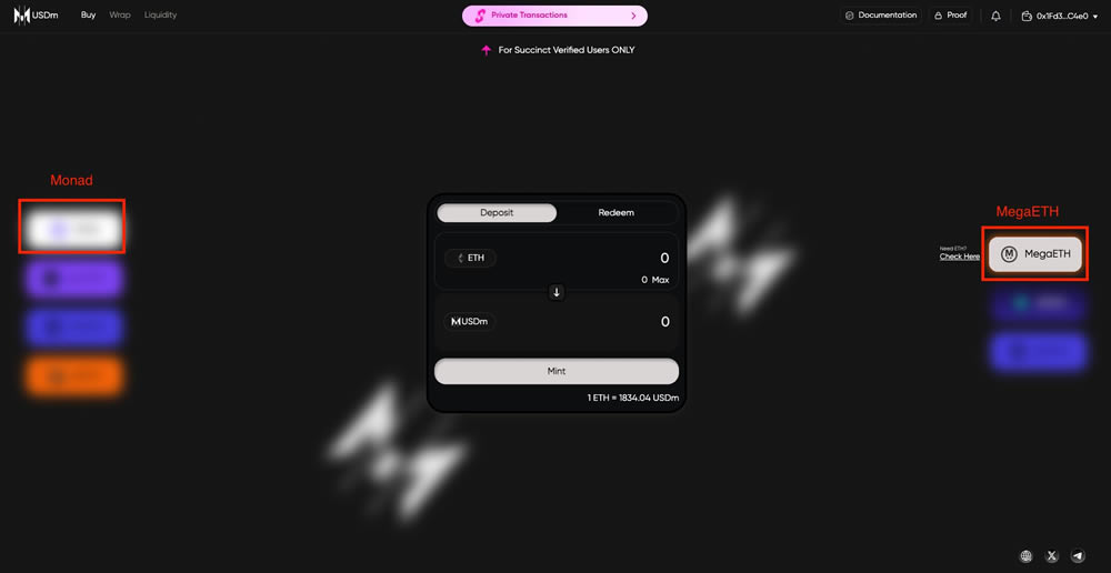 Mynt 是一个基于 zk 驱动的去中心化稳定币协议,建立在 Monad 和 MegaETH 测试网上,允许用户通过存入 ETH 或 MON 作为抵押品来铸造 USDm。Mynt 仍处于早期测试网阶段,尚未推出任何代币——这使其成为未来潜在空投的主要候选者。Mynt 是最近在 Monad 和 MegaETH 测试网上启动的一个杰出项目,它是一种利用零知识证明进行私人余额验证的去中心化稳定币协议。