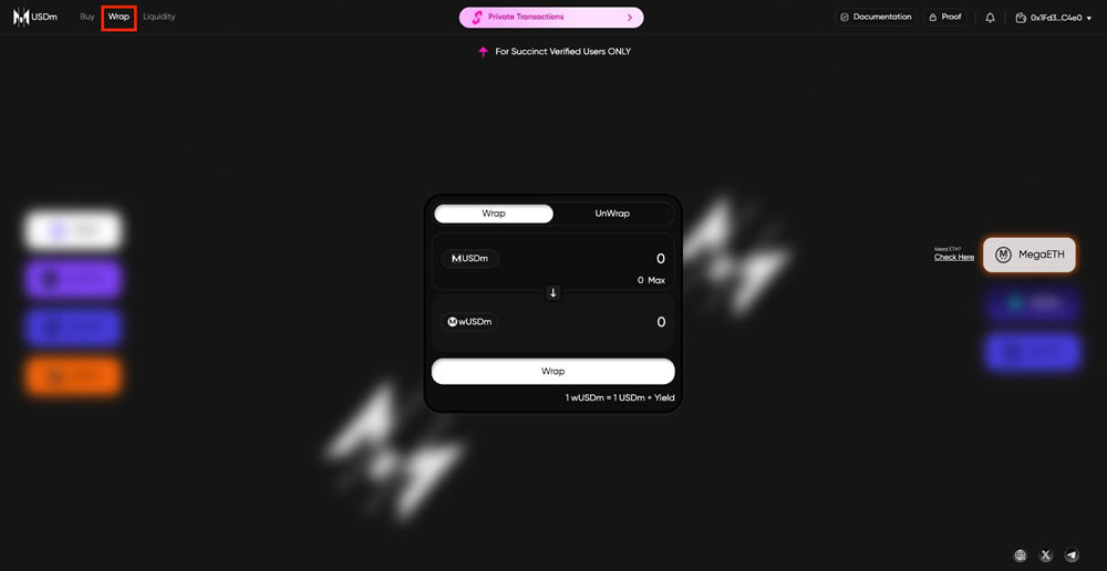铸造 USDm 后,导航至界面左上角菜单上的“Wrap”选项卡。