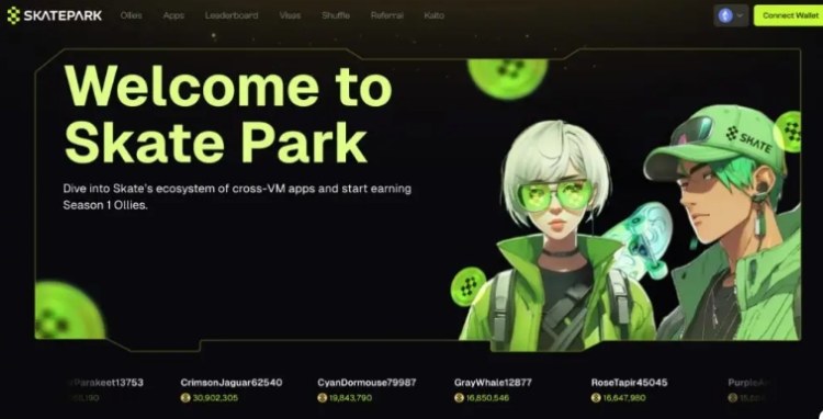 所有活动都直接在用户的Solana 钱包上进行无论应用程序是否在 EVM 中运行,用户仍然可以获得无缝体验。每次互动都会积累Ollies积分——Skate 的代币积分系统这是将跨链体验游戏化并吸引大量新兴链用户的重要第一步。