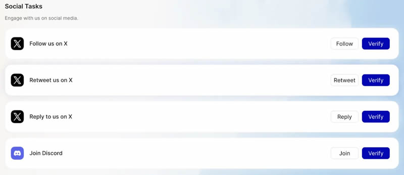 社交任务旨在传播关于 Pharos 的认知。您可以在 X 上发布公告,在 Discord 上参与讨论,或完成“社交任务”部分列出的其他任务。请确保您的 X 帐户已关联,以便追踪您的贡献,这也有助于提升您的经验。