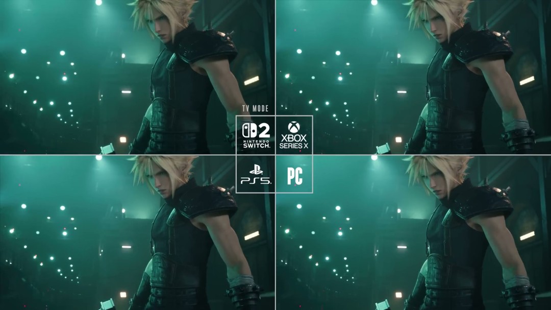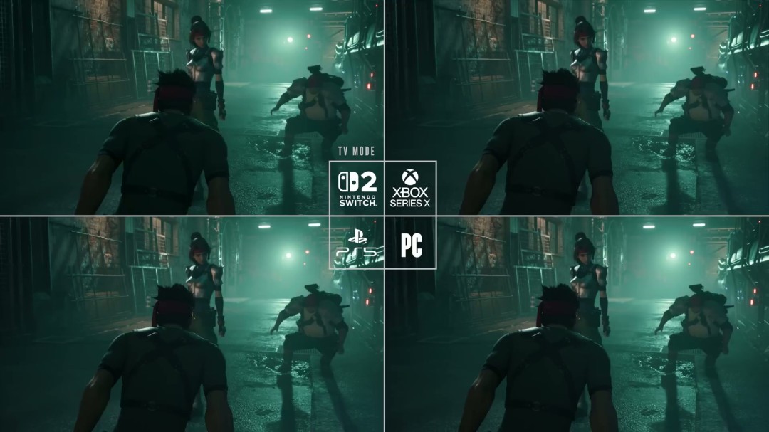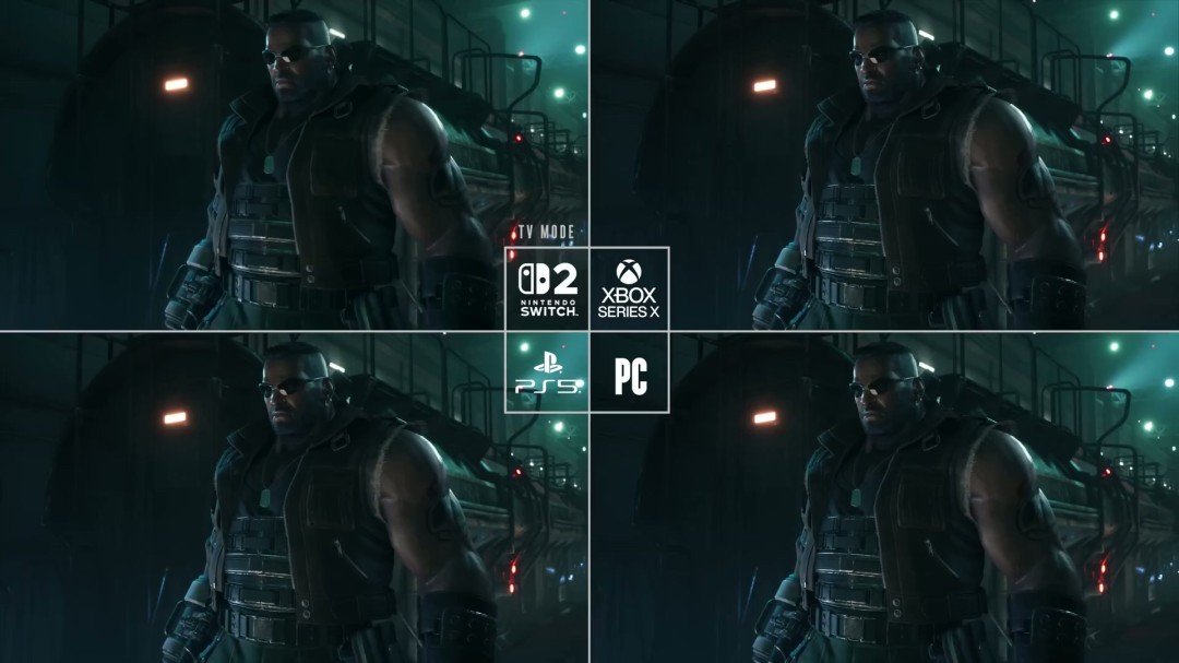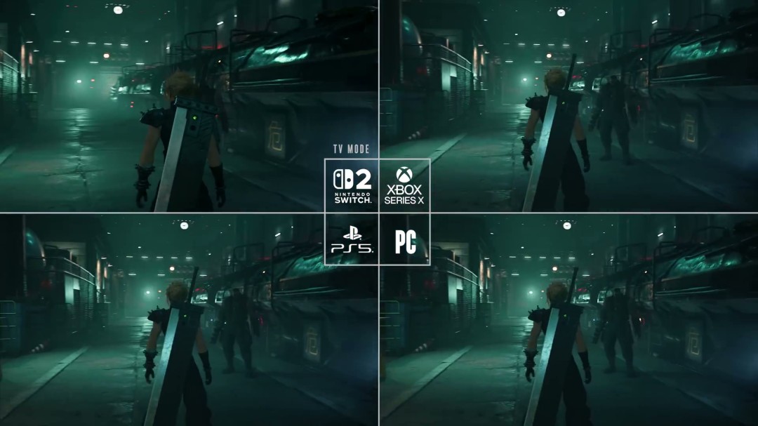 SE近日发布了一段官方对比视频,展示了《最终幻想7:重制版Intergrade》在Switch 2、PS5、Xbox Series X和PC平台上的画面差异。