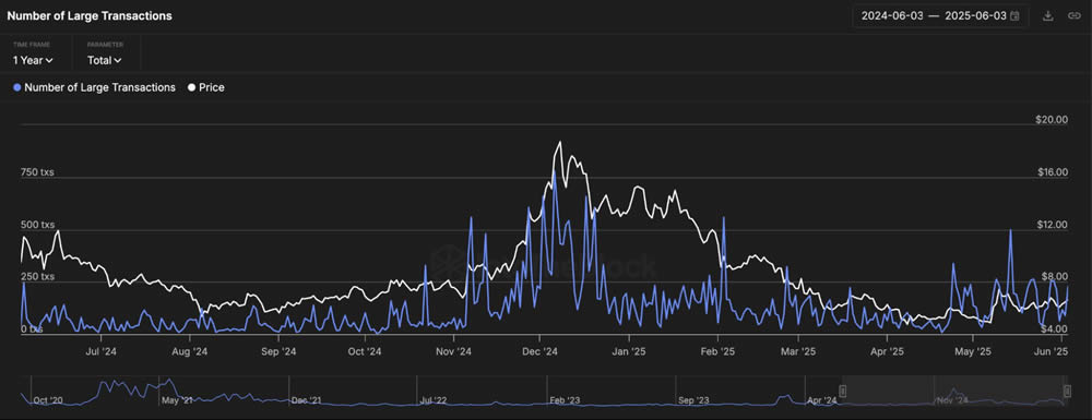 这种飙升通常被解读为机构投资者或大户的囤币行为。例如,6月3日,由鲸鱼驱动的突破推动UNI价格从约6.45美元上涨至7.00美元(盘中上涨7%)。