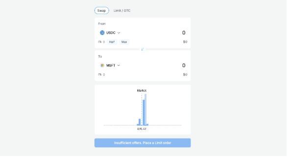 Swarm是一个为代币发行、流动性和交易提供合规的 DeFi 基础设施,同时用户可通过其推出的DEXdOTC交易美股代币和黄金,包括AAPL、NVDA、MSFT、COIN和TSLA等12种美股代币。Swarm支持用户在以太坊主网、Polygon和Base上使用USDC等稳定币购买美股代币,交易费用设定为 0.25%。