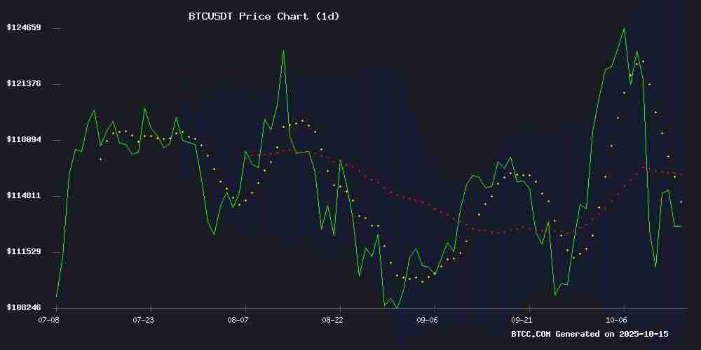 截至2025年10月15日,比特币交易价格为112,357美元,并在20日移动平均线116,846美元下方面临短期阻力。MACD指标仍看跌,位于-2,292.1959,而柱状图上825.8491处的正向背离值得关注。BTCC团队指出,BTC目前处于布尔带盘整阶段,位于126,873美元的上轨和106,819美元的下轨之间。