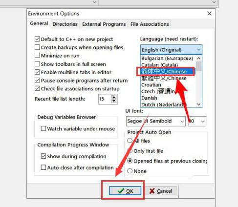 4、然后在下方给出的选项列表中,选择"简体中文",最后点击"OK"保存就可以了。