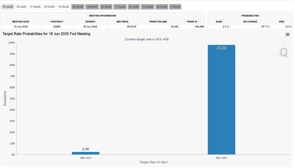 此外,近期美国经济数据也增强了货币宽松的前景。2025年4月消费者物价指数(CPI)环比仅上涨0.2%,同比仅上涨2.3%,均低于预期。这加剧了市场对美联储可能在不久的将来转向降息的猜测。
