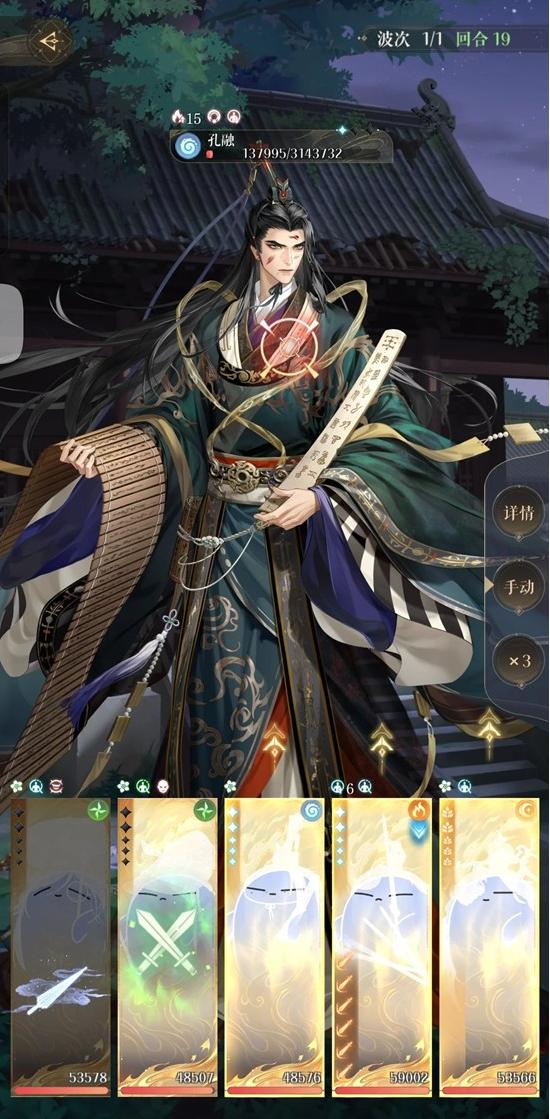 3.董奉大招尽量在确保打满助剑次数的回合开,孔融大招尽量在本回合助剑次数已打完且下回合能打够层数的情况下开。