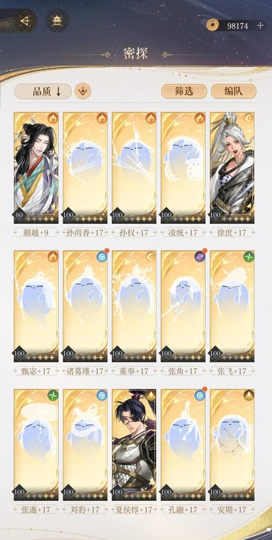 9200完美盘二星张飞,7100无晴盘二星张邈,5400包元盘一星孔融,80+13二星孙权,3.1w血量100+17着手盘二星董奉。