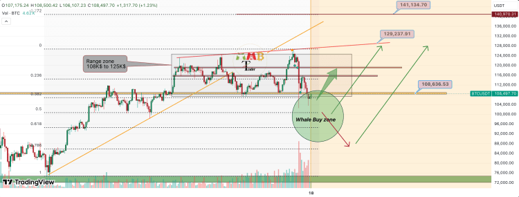 尽管比特币价格跌破10.8万美元,但加密货币分析师MMBTrader告诉投资者,现在可能并非真正买入该加密货币的最佳时机。相反,他们建议投资者等到“鲸鱼”可能再次开始购买比特币的价位再买入。鲸鱼的买入区间位于9万美元以下,在支撑位形成之前,最低可能跌至8.7万美元。