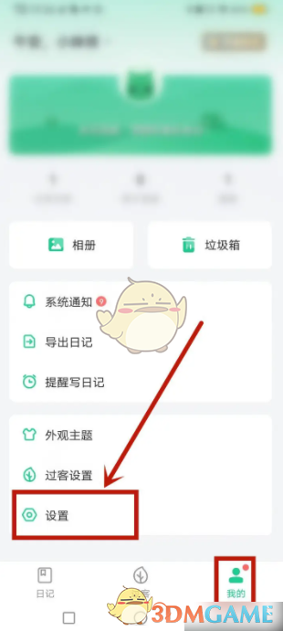 1、吾记日记app页面,点击右下角我的,选择设置项目。