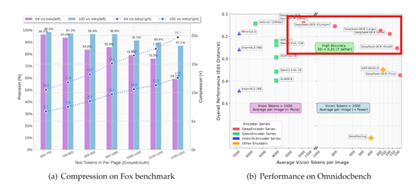 而且DeepSeek研究后发现,当压缩率小于10倍时(即文本token数是视觉token数的10倍以内),模型OCR解码准确率高达97%;即使压缩率高达20倍,准确率依旧能保持在60%左右,效果相当能打。