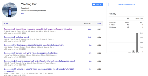 Yaofeng Sun,从去年开始就陆续参与DeepSeek多款模型研发,包括R1、V3中都有他的身影。