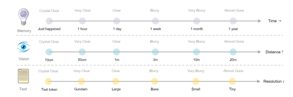 只需将上下文光学压缩与人类记忆的衰退过程进行类比,我们就能发现二者高度相似: