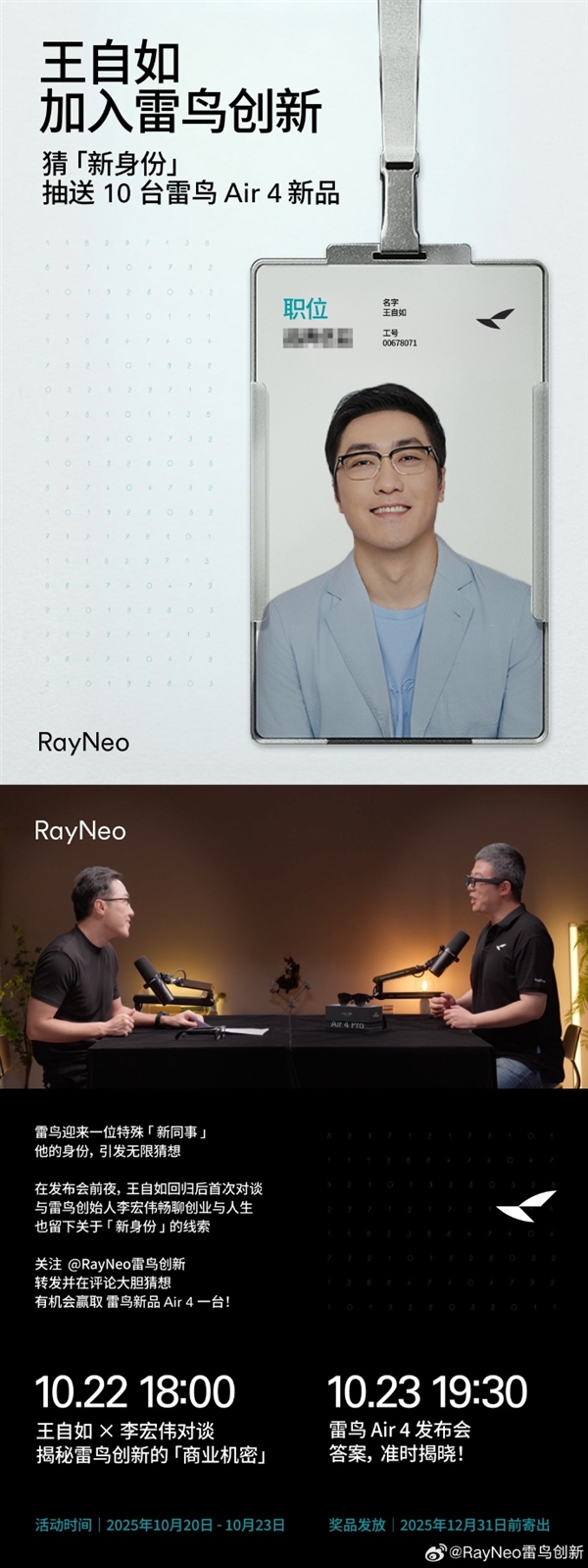 10月21日消息,昨日晚间,雷鸟创新发文官宣了王自如入职雷鸟的消息。