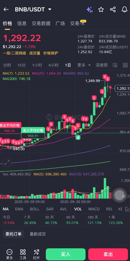 币安人生的爆火源于最近BNB的暴涨,已经突破了1300美元。