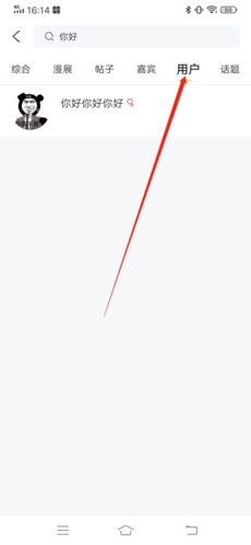 3、出搜索结果后,点击上方的“用户”,这样就能成功看到搜索的用户了,