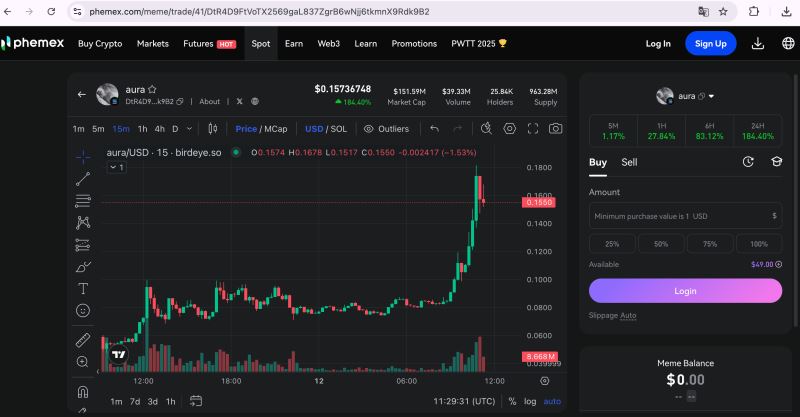 收益聚合器:通过与 Solana 的集成,它提供了高收益池,用户可以在其中质押 AURA 或 LP 代币。费用和代币治理:持有者可能分享交易费用或治理补贴,从而调整协议激励和未来决策。社交模式的功效:凭借快速飙升(一天 50 倍),它吸引了眼球素和交易者的收益。链上集成:在Raydium、Meteora、Orca上活跃,AURA/SOL对具有显着的交易量。本质上:Aura 用例涵盖 DeFi 收益、治理和病毒式代币经济学——每个都相互强化。