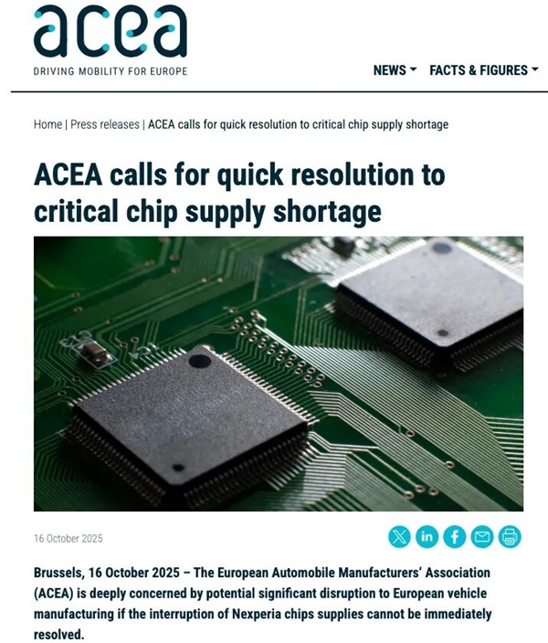 欧洲汽车制造商协会(ACEA)直接站出来警告,说大家的芯片库存可能几周内就耗尽,生产线随时可能停摆。大众、宝马、奔驰这些这帮车企估计这会儿正对着荷兰政府骂娘呢: