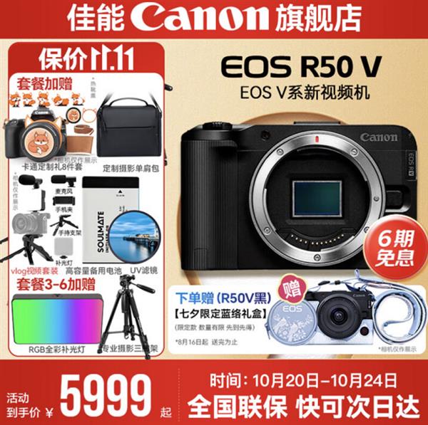 本次双十一大促期间,佳能为全新双修微单R50V量身打造了极具诚意的购机优惠体系,以5999元起的惊喜价开售,彻底降低了专业级视频创作的门槛。除了极具竞争力的价格外,佳能还精心规划了六大梯度套餐,从入门到专业全覆盖,满足不同层级创作者的个性化需求。