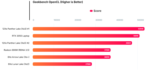 Intel此前已宣称Xe3相较于Xe2将有50%的性能提升,这次的跑分数据预示着在实际游戏中这一提升幅度很可能会实现甚至超越。