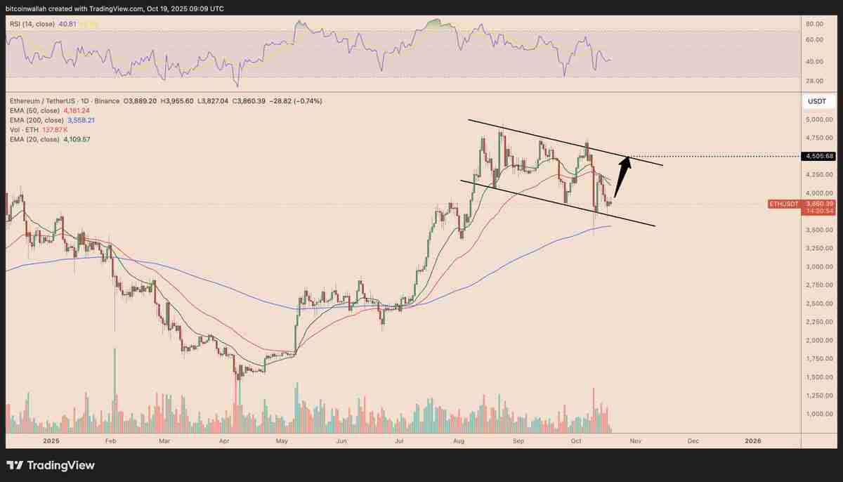 以太坊在触及两个月低位3435美元后迅速企稳,两周内涨幅超15%。当前多项数据表明,ETH有望在10月底前进一步上探4500美元。