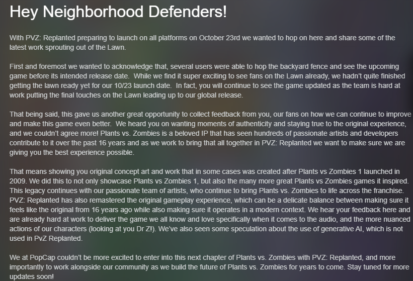 同时,我们也注意到有关于“是否使用生成式AI”的猜测——可以明确告诉大家,《植物大战僵尸:重植版》中并未使用生成式AI技术。