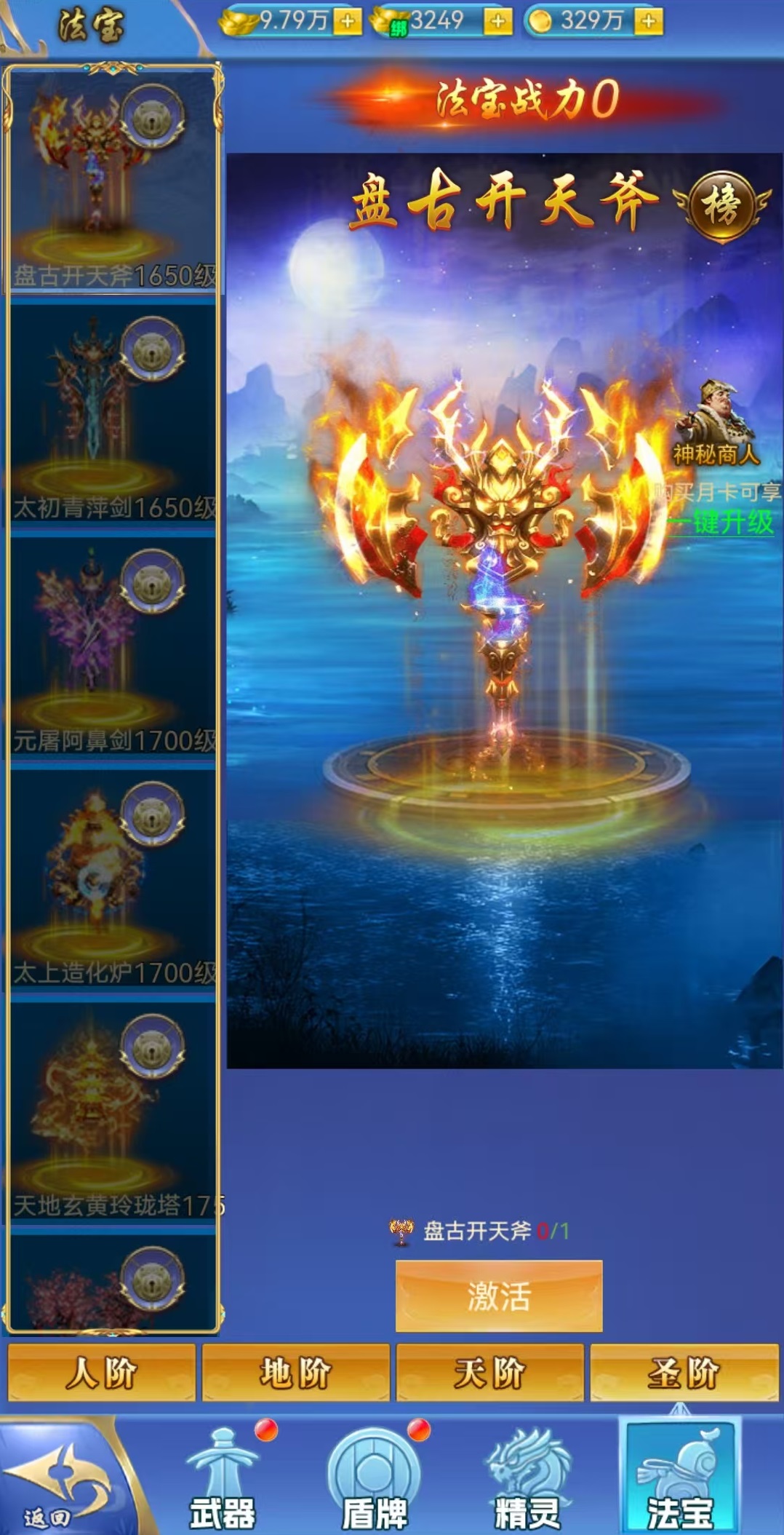 游戏中共设有四大类神器:武器、盾牌、精灵和法宝。每种神器均划分为四个等级品阶,由低至高依次为人阶、地阶、天阶和圣阶。不同品阶代表不同的属性强度与技能效果。值得注意的是,所有已激活的神器所附带的被动属性与主动技能均可叠加生效,这一机制常被新手忽视。随着激活数量增加,角色整体战斗力将实现质的飞跃,尤其在挑战高难度副本或PVP对抗时,神器技能往往成为胜负关键。
