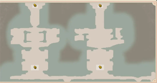 接着我们回到大殿,接着往右边走,地图如下,我们在左下角。