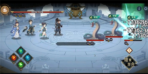 前面两条蛇是傀儡,我们把修士打死即可。而且修士可选中,没什么难度,有50%嗜毒,也就是降低50%毒量,我们不用毒打就行。